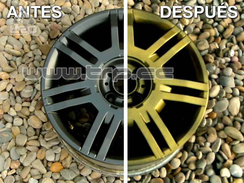 El acabado de esta pintura proporciona un efecto Oro metalizado en tono satinado.