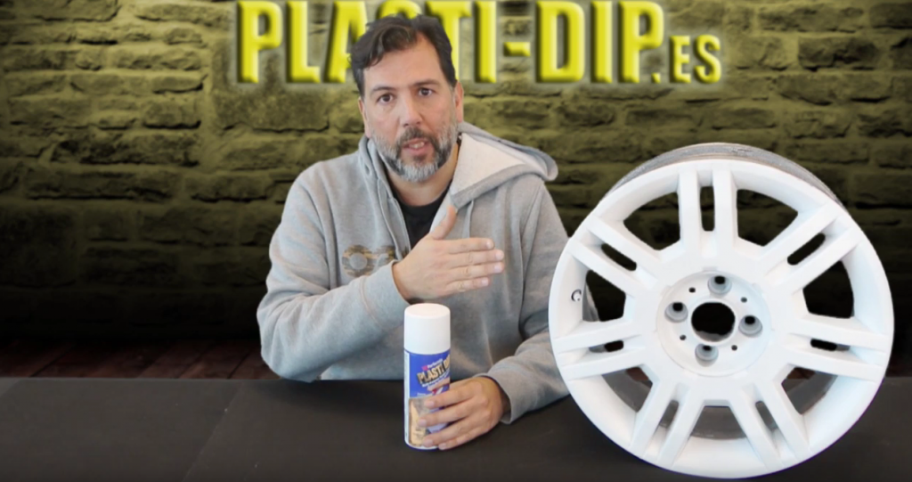 Hoy en este vídeo, vais a poder ver el proceso de pintado de nuestra llanta de muestra con Spray blanco vinilo líquido plastidip, es una llanta de coche real de aluminio y usada. Solemos usarla en nuestras pruebas de pintura para ver como quedan los colores y efectos plastidip. Así pues hoy toca pintarla con spray plastidip color blanco mate. A esta llanta vamos a darle varias capas, un mínimo de 4 para que veáis como aplicarlo y como queda el resultado.